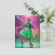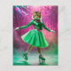 Adorable Ice Skating Cat in Green Postcard