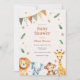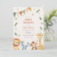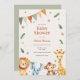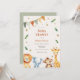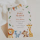 Fun baby shower invitation featuring watercolor cute baby jungle animals. Personalise with your information or click "Click to customise further" to edit font styles, size and colours.