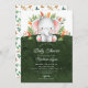 Cute watercolor jungle safari baby shower design featuring an adorable elephant with jungle leaves on a dark green background. Perfect for a girls baby shower, boys baby shower or gender neutral baby shower. Visit our shop to view this design with individual animals.