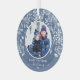 Round glass Christmas tree ornament features your photo surrounded with white leaves, berries and dots on a blue background. TIP: Upload a high resolution, photo that features the kids in the middle. Ornaments make memorable gifts for family and friends or create for yourself. MORE colours in our store.