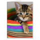 An adorable tabby kitten in a colourful basket blank inside all occasions greeting card