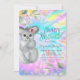 Cute baby shower invitation features a baby koala with a tie-dye background. These baby shower invitations are easily customised for your event by simply adding your details.
