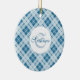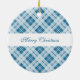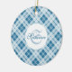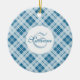 Adorable Light Blue Christmas tartan Monogram Ceramic Ornament