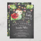 Cute Little Lady Baby Shower Invitation featuring the sweetest little ladybug with pretty pink flowers set on a popular black chalkboard background for a girls baby shower.