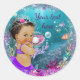 Mermaid baby shower stickers with adorable purple brunette mermaid wearing a tiara and pearls on a pretty teal blue and purple under the sea background. You can add text to personalise these cute mermaid baby shower stickers.