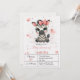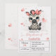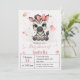 Cute girl baby shower invitation featuring adorable little female zebra wearing a cute pink bow with some love hearts