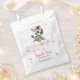 Cute girl baby shower favor bag featuring adorable little female zebra wearing a cute pink bow with some love hearts