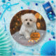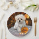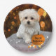 Adorable maltese puppy celebrates Halloween Paper Plate