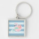 Adorable Mermaid on Light Blue and White Stripes Key Ring