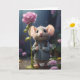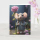 Adorable Mouse Flower Illustration Blank Greeting Card