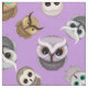 A cute little owl pattern I created using my illustrations of owls over a medium purple.
