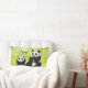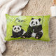 Adorable panda bears - lovingly hand-painted - a pillow with a bamboo forest in soothing green, customizable with name or message, perfect for the nursery or as a gift.
