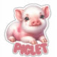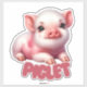 This large nursery sticker features an adorably cute, cartoon-style baby piglet with a sweet and endearing expression. The piglet is depicted lying down with its small legs tucked under its body. It has a soft pink skin tone with a few darker pink patches, and its large, expressive eyes, along with its little snout and floppy ears, add to its charming appearance. Below the piglet, the word "PIGLET" is written in bold, playful letters, perfectly matching the cute and child-friendly design.