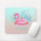 Adorable Pink Flamingo Palm Leaves Glass Coaster Mouse Pad