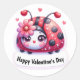 Adorable Pink Heart Ladybug Valentine's Day Classic Round Sticker