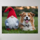 Adorable Plush Gnome and Fluffy Dog Lying in Grass Poster