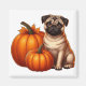 Adorable Pug Sitting Next to Pumpkins and Leaves Magnet
