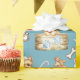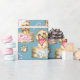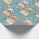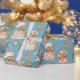 These adorable puppies want to wish your friends and family a Merry Christmas! A baby blue background with adorable puppies holding signs that say "Merry Christmas" and little paw prints. Gingerbread cookies, candy canes, and dog bones scattered throughout.