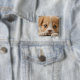 Round button featuring a close-up of a cute golden-furred puppy with big blue eyes and a sweet expression. Perfect as an accessory for pet lovers or a thoughtful gift.