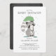 Cute racoon holding a leaf umbrella shower invitation with a coordinating chalkboard back.