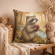 This cosy throw pillow features an adorable woodland racoon collecting berries in a warm storybook forest. A charming accent for nurseries, children’s rooms, reading nooks, or nature-inspired home decor.
