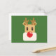 Embrace the holiday spirit by sending out our Charming Reindeer Holiday Postcard to friends and family. This delightful postcard showcases a stylised, adorable reindeer character, front and centre, complete with a whimsical red nose and a pair of playful antlers. Set against a backdrop of festive green, the design is a nod to the classic tales of Santa's helpers and is sure to evoke the merry feelings of Christmas.