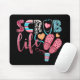 Beautiful vibrant colours and retro typography in this adorable "Scrub life" Mouse Pad. Pinks and Turquoise on a black background.