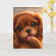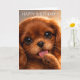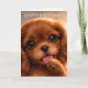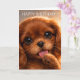 Adorable Ruby Cavalier Spaniel Card. The Spaniel is licking it's Paw in a cute pose.