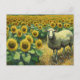 AI generated adorable sheep in a sunflower field with a touch of Van Gogh