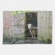 This kitchen or dish towel features a sweet gentle sheep standing in the doorway to his home in Connecticut.