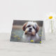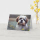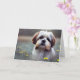 This birthday card features a sweet shih Tzu puppy dog in a field of flowers.