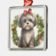 ADORABLE SHIH TZU PUPPY DOG CHRISTMAS WREATH METAL ORNAMENT