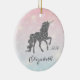 Adorable Silver Glitter Unicorn Bokeh Ceramic Ornament