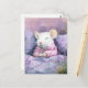 A cute white mouse in PJs sleeps in a bed with some lavender plants fantasy art