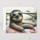 Adorable Sloth floating in a Doughnut Postcard