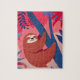 Adorable Sloth in Pink Colourful Jungle Jigsaw Puzzle