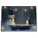 Delight in this charming winter illustration of a snowman in a top hat and a playful penguin enjoying a game of chess. A heartwarming and whimsical scene that captures the magic of the holiday season.