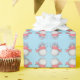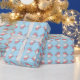 This fun pattern is made up of rows of snowmen. Each playful snowman is wearing a red scarf and blue hat. The light blue background can be customised.