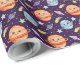 Adorable Space Design Smiling Planets and Shooting Wrapping Paper