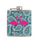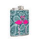 Adorable Teal Blue and White Paisley-Flamingos Hip Flask
