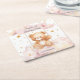 Complete your baby girl’s birthday table decor with this adorable teddy bear paper coaster! Featuring a sweet watercolor bear swinging through pink clouds and golden stars, this design includes a festive balloon and customisable name and message. With the joyful “Let’s Celebrate!” text, this coaster adds charm and coordination to your 1st birthday party theme. A perfect match to our full teddy bear birthday collection!