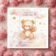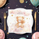 Add a sweet and personalised touch to your baby girl’s 1st birthday with this adorable teddy bear paper napkin! Featuring a watercolor bear swinging in the clouds, surrounded by golden stars and a pink balloon, this dreamy design includes a custom name and message like “Let’s Celebrate!”. Perfect for baby birthdays, baby showers, or toddler parties. Coordinates beautifully with matching tableware in our teddy bear birthday collection.