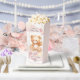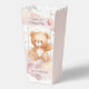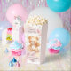 Add a sweet touch to your celebration with this adorable teddy bear popcorn favour box! Designed with a watercolor bear on a swing, soft pastel clouds, golden stars, and a pink balloon, it’s the perfect match for a baby girl’s 1st birthday. Personalised with your child’s name and the phrase “Let’s Celebrate!”, this treat box is ideal for popcorn, candy, or small gifts for your party guests.