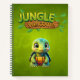 Personalise the back cover of this adorable "Jungle Welcome" notebook! Whimsical baby box turtle cartoon graphic animal character on a forest green background. This design is perfect for tortoise lovers, safari woodland nature wildlife fans, and anyone who enjoys cute, cosy zoo vibes.