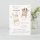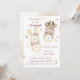 "A charming baby shower invitation featuring a soft, pastel-coloured design with a cute bunny and deer plushie. The elegant typography announces the celebration of twin girls, creating a warm and joyful atmosphere. Perfect for a sweet and memorable baby shower event."