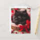 Adorable Valentine Fluffy Black Kitten in Basket Postcard