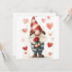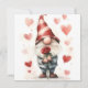 This adorable illustration features a charming gnome holding a single red rose, surrounded by a flurry of hearts. Perfect for Valentine's Day, this whimsical image is sure to bring a smile to your face.