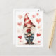 This adorable illustration features a charming gnome holding a single red rose, surrounded by a flurry of hearts. Perfect for Valentine's Day, this whimsical image is sure to bring a smile to your face.