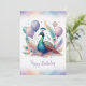 Adorable Watercolor Peacock Happy Birthday Holiday Card