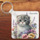 Adorable Watercolor Scottish Fold Kitten Key Ring